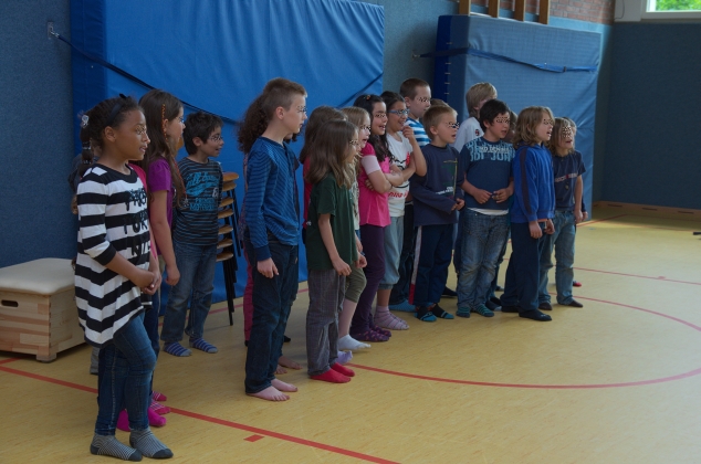 Die Klasse 2b führte den Baggermatsch-Rap auf