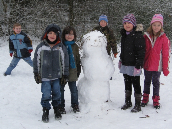 Auch die Erst- und Zweitklässler bauen tolle Schneemänner