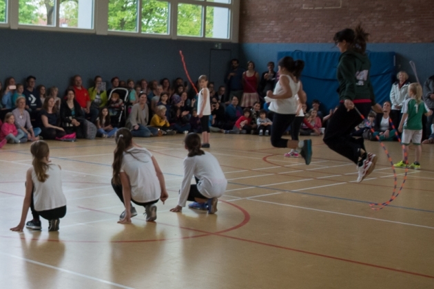 Beim Rope-Skipping kann man auch zu zweit mit einem Seil springen