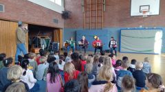 Nun sangen alle gemeinsam das Lied „Singen wir im Schein der Kerzen“. Danach zeigte die Klasse 3c das Theaterstück „Was soll aus Weihnachten werden?“. Zum Abschluss schmetterten alle Anwesenden gemeinsam noch das Lied