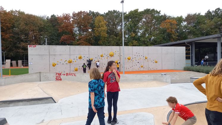 Die Kletterwand; nicht so hoch, dass man sich sichern muss - dafür breit...