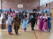 Auch in diesem Jahr gab es eine ausgelassene Faschingsfeier am Rungwisch. Nach einer Betreuungszeit von 8 bis 9 Uhr kamen alle Jecken in den Klassen zusammen. Hier wurden meist noch die Klasse geschmückt und das Büffet aufgebaut. Nach Vorstellung der Kostüme, vielen Spielen und unerlässlichen Erholungspausen am Büffet ging es um 10.30 Uhr für alle Rungwischler in die Turnhalle. Alle Anwesenden durften ihre überwiegend aufwendig gestalteten Kostüme präsentieren. Danach ging es auf die Tanzfläche. Hier gab es neben bekannten Kindertänzen auch viele aktuelle Gassenhauer, zu denen lebhaft getanzt wurde. Dabei bildeten sich immer längere Polonaisen. Gegen 11.30 Uhr ging es dann noch einmal zurück in die Klassen. Auch hier gab es noch unterschiedlichste Aktionen mit vielen Spielen und Tänzen. |