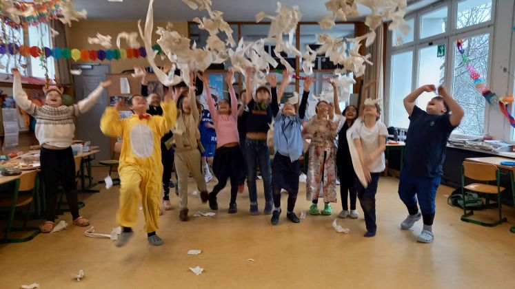 Nach dem Mumienwickeln MUSSTE es wieder Papier schneien