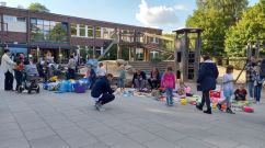 Bei strahlendem Wetter fand der Flohmarkt nachmittags auf dem Schulhof statt. Viele Kinder verkauften ihre ausgemisteten Sachen.