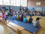Auch in diesem Jahr beteiligte sich der Rungwisch wieder am Bundesweiten Vorlesetag, indem Schulleiter Erik Eiberger den Schülern in der Turnhalle vorlas. Die eigentliche Vorleseaktion fand am Rungwisch allerdings aus organisatorischen Gründen erst am Freitag, dem 9. Dezember 2016 statt. In der dritten Stunde las Erik Eiberger den Kleinen (Vorschüler, Erst- und Zweitklässler) das Buch "Irgendwie anders" vor. In der fünften Stunde kamen dann die Großen (Dritt- und Viertklässler) in den Genuss, "Zwei dicke Freunde" kennenzulernen. |