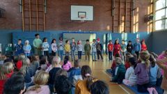 Auch in diesem Jahr trafen sich am letzten Schultag vor den Weihnachtsferien nach der ersten Pause Kinder und Personal in der Turnhalle zu einer kleinen Weihnachtsfeier.